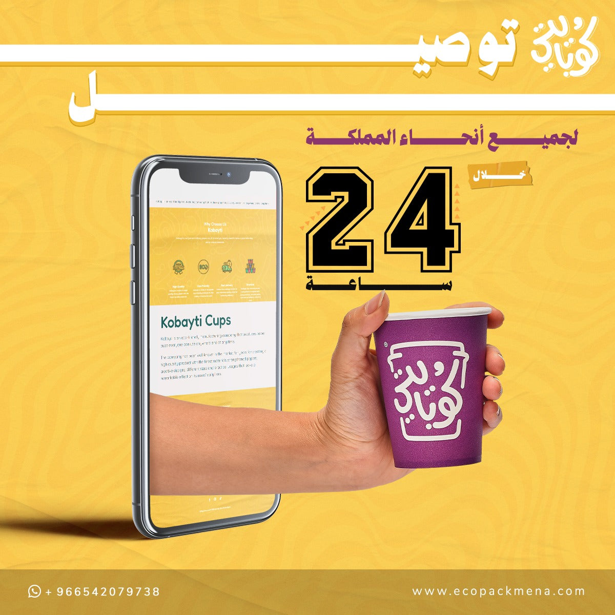 قد ايش كانت الكمية اللي تبي تطلبها صغيرة أو كبيرة، كوبايتي بيوصلها لباب بيتك في جميع أنحاء المملكة خلال 24 ساعة فقط